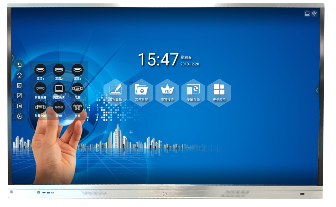 65寸会议一体机功能介绍 手机同屏投影 PPT批注 一件投影 windows安卓系统一键切换 电子白板 会议内容一键扫码带走 65寸会议触摸一体机实物图 65寸会议一体机接口设置 65寸会议触摸一体...
